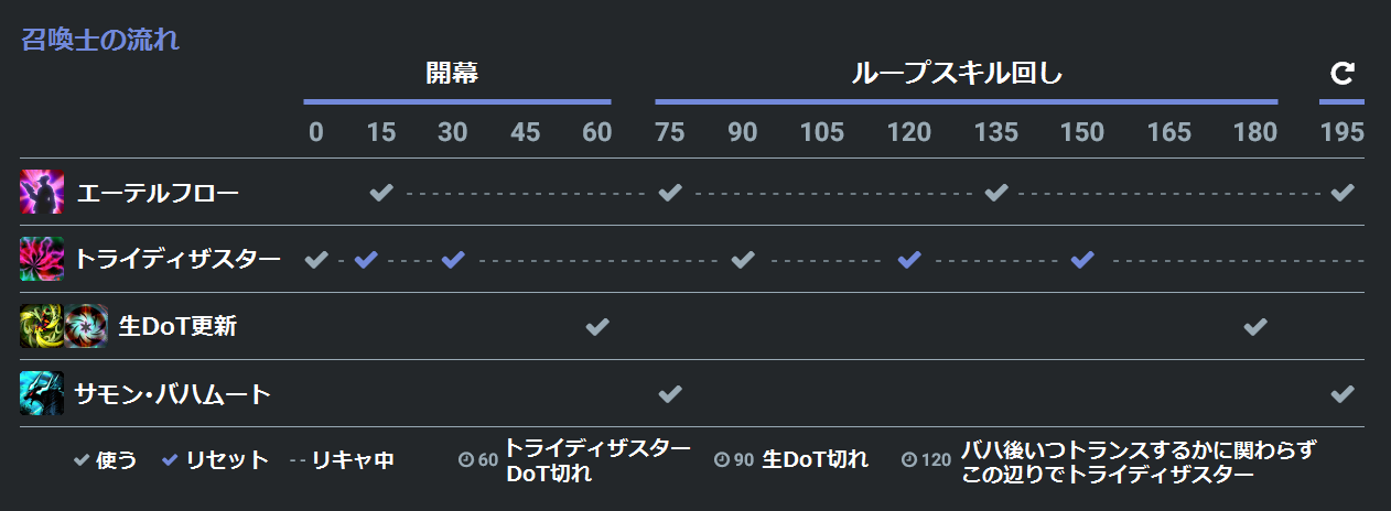 デミバハムートが消えてからエーテルフローのリキャが残り16-17秒になるまでの間は、トランスバハムートはいつでも使っていいです。