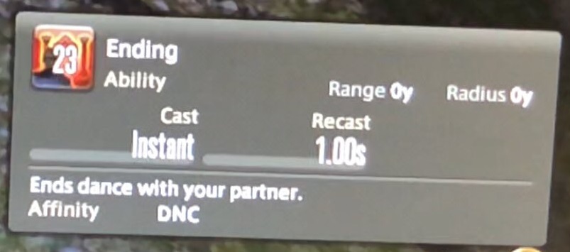 ダンスパートナーを選択すると「クローズドポジション」は「Ending」というアクションに入れ替わる