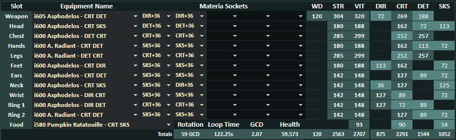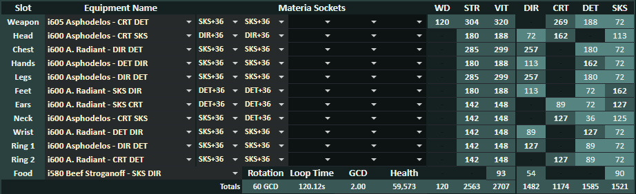 装備更新中の注意点として、GCDを0.01秒短縮するためにはSSが58~59必要なので、何も考えずに詠唱マテをはめていくと50以上のサブステを無駄にしてしまう場合があります。