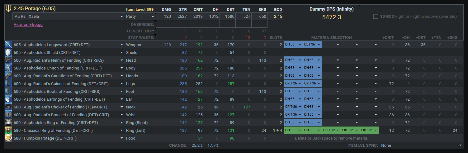 高fpsで発動遅延が0.002秒以下、テクニカル中に常に6WS入ることが確認できる場合のみ武器のSSを外しGCD2.50に Ihttps://etro.gg/gearset/ae461afa-fc40-46a1-b713-e17fb9eee292