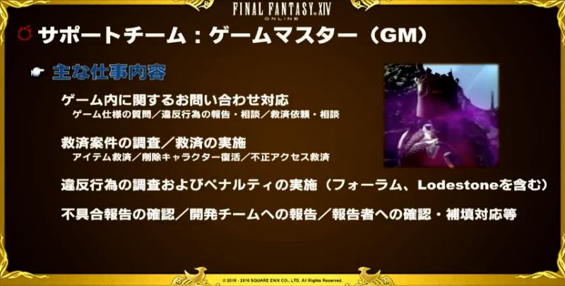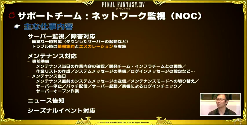 主な内容: カスタマーサポート(GM等)、ネットワーク監視、不正対策の3チームについて